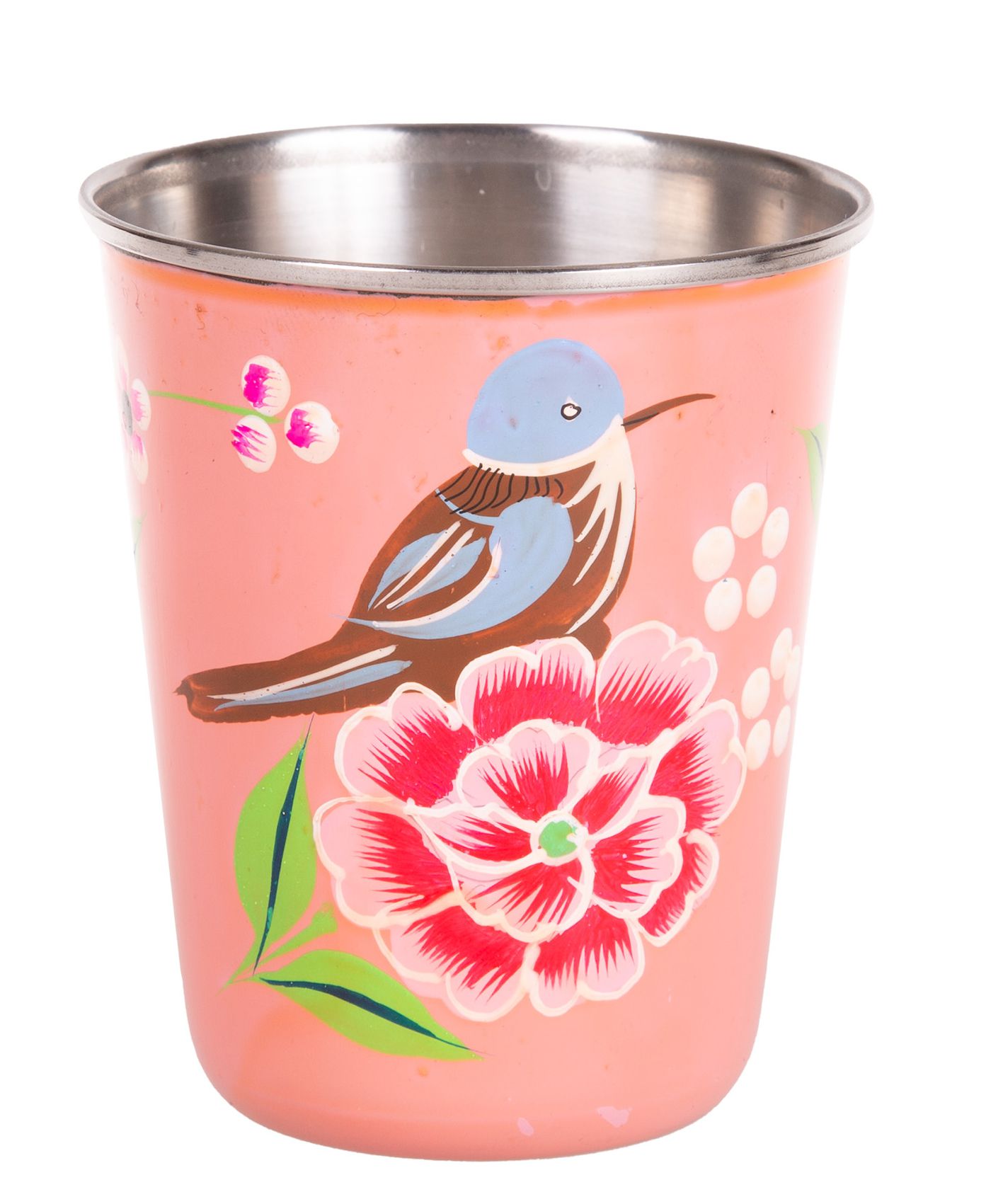Tumlare i rostfritt stål handmålad tumbler Indien liten rosa